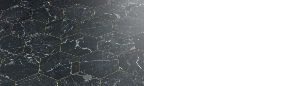The Carrara Nera Esagono sheet vinyl flooring is a fantastic example of a luxurious bathroom floor. Its black and gold hexagon stone design creates a striking effect while remaining soft to the touch.