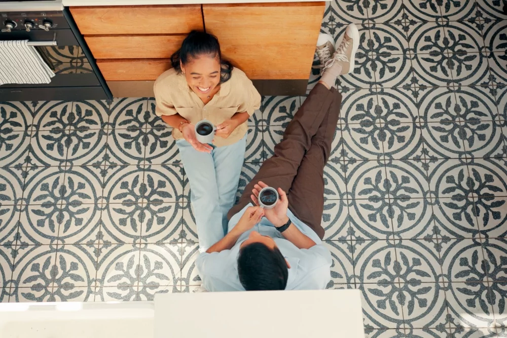 - Kitchens: Pair bold flooring with sleek cabinets for a show-stopping contrast