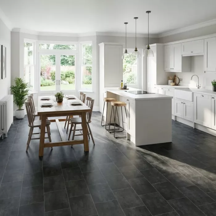 Combining standout design with everyday practicality, Honed Black Slate Vinyl Roll Flooring is the perfect flooring solution for any stylish and functional home.