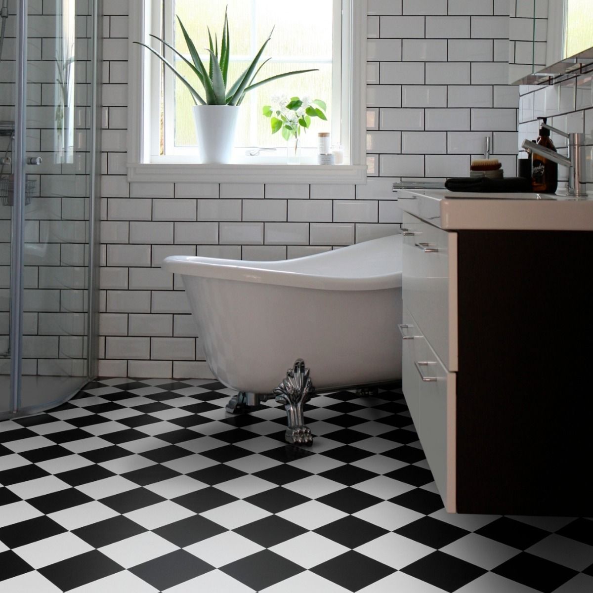 Belfast captures a timeless aesthetic with its iconic black and white checked design, offering a stunning Victorian tile effect in a practical vinyl flooring format. This classic monochrome look brings a sophisticated heritage feel to your space that never goes out of style. Durable and water resistant, it’s the perfect way to achieve a high-end chequered floor without the cost or complexity of traditional tiling.Belfast vinyl flooring rolls are designed for those seeking an iconic and timeless checkered look paired with dependable performance. Featuring a high-quality 2.8mm thick thermoback foam backing and a durable 0.2mm wear layer, this cushioned vinyl ensures a comfortable, forgiving feel underfoot. This construction helps to reduce impact noise and provides a much warmer alternative to traditional black and white ceramic tiles.