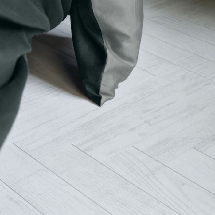 Transform your home with the subtle mix of white and grey tones of Berry Alloc Chateau+ Chestnut White parquet laminate, available at Best4Flooring. The 100% water-resistant Hydro+ technology ensures it’s easy to maintain, while its design with 4 bevels adds a natural touch, backed by a ten-year commercial warranty.Transform any space with the Berry Alloc Chateau+ Chestnut White Herringbone Laminate Flooring, available at Best4Flooring. This flooring combines the soft, light hues of white and grey with a subtle distressed finish, creating a contemporary yet timeless aesthetic. The planks, sized at 504 x 84 x 8 mm, are manufactured with 4V bevelled edges to enhance the natural wood look, eliminating the need for additional treatments like sanding or waxing.