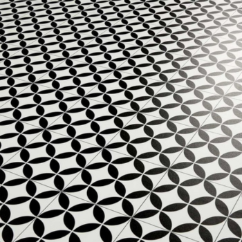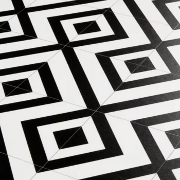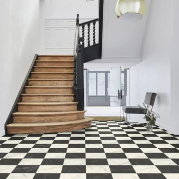 Design tip: Pair black and white flooring with neutral walls for a classic yet contemporary look. Add pops of colour through furniture and decor to balance out the high contrast.