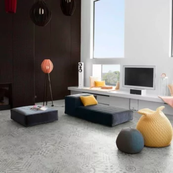 Design tip: To avoid overwhelming a room, balance out bold floor designs with softer tones on the walls and furniture.