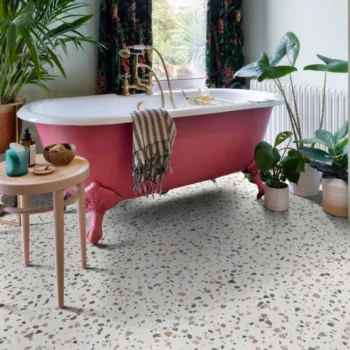 Terrazzo is making a comeback in the design world, and it's not hard to see why. This composite material made of chips of stone, glass, or other materials set in concrete has been used for centuries but is now being reimagined in modern ways. In 2024, achieving the terrazzo style is both quick and simple, thanks to Luxury Vinyl Tile (LVT) or vinyl flooring. These materials beautifully replicate the intricate patterns of terrazzo, offering a low-maintenance and cost-effective alternative to the traditional composite.