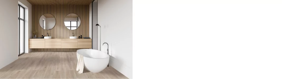 If you want to incorporate wood and stone into the bathroom, you can do so in multiple ways. Choosing natural-looking flooring will help you create the most significant impact. Take the cushion vinyl flooring sheet ocean painted wood, for example. This rustic and weathered-looking floor gives you a stunning natural wood effect while remaining soft and cosy underfoot.