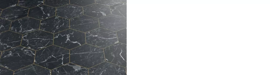 The Carrara Nera Esagono sheet vinyl flooring is a fantastic example of a luxurious bathroom floor. Its black and gold hexagon stone design creates a striking effect while remaining soft to the touch.