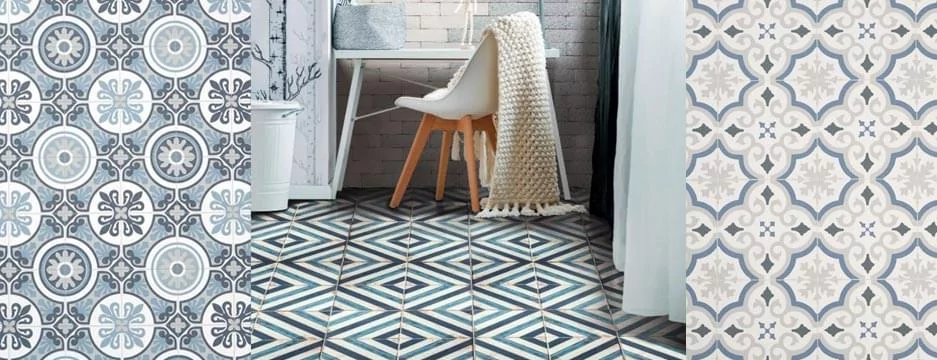 The colour blue has many famous associations from morosely "singing the blues" to sudden or unexpected circumstances appearing "out of the blue". As we mentioned initially, the colour blue is a cheerful colour that generates calm and positivity. We have a lovely range of blue sheet vinyl flooring with and blue porcelain tiles.