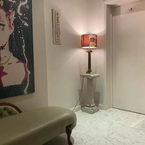 Stylish and iconic, the Carrara Bianca Esagono sheet vinyl flooring works perfectly in accentuating this lush modern interior.