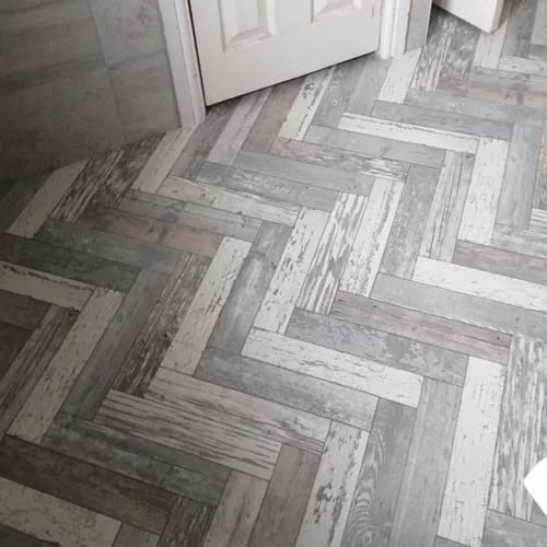 You can find herringbone designs in the Tudor Mansions sheet vinyl collection, enabling you to have this authentic wood effect pattern at an affordable price.