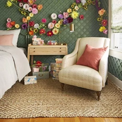 Fresh flowers always lift the spirits, and bold floral wallpapers can be a real mood booster, too. Try a winter floral - sumptuous pink roses, say, against a dark or black background - on one feature wall, particularly in a bedroom, for a very contemporary take on the trend.