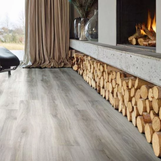 Invoking thoughts of cosy log cabins and Swiss chalet with a luxury wood effect vinyl floor.