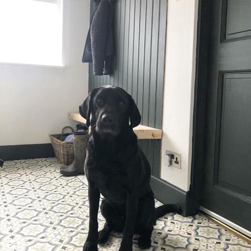 Hugo from @westview.house can attest to the comfy feeling from resting your paws on Lucia; part of our Baldosa sheet vinyl flooring collection. As you can tell from the decor, this bright patterned vinyl goes well with a dark colour scheme.