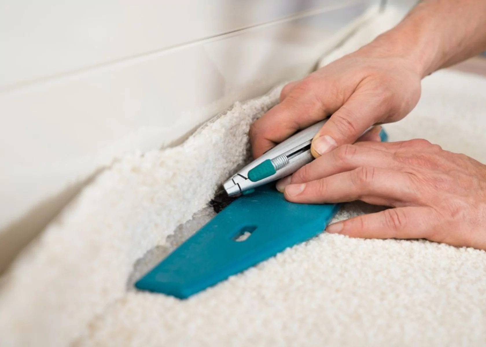 - Stretching and Securing the Carpet: Achieving a professional finish relies heavily on how well the carpet is stretched and secured over the concrete surface. Start by loosely laying the carpet over the area, ensuring it overlaps the walls. Use a knee kicker to stretch the carpet towards the walls, beginning from one corner and gradually moving to the other sides. Secure the edges into the tack strips, trim any excess material, and ensure a neat edge against the wall trim or baseboard. See our guide for more detailed instructions on how to install carpet