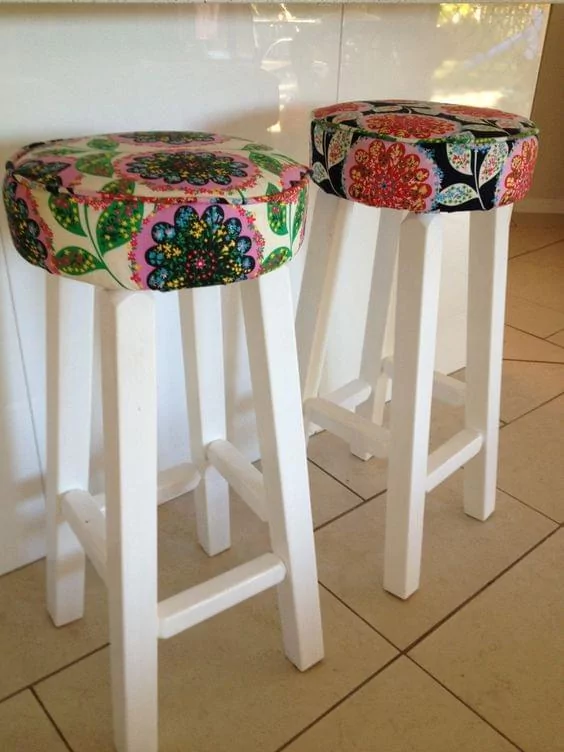 Why not upcycle your stools to go with your brand new table? Again paint, stencils and plastic coverings are ideal starting points for inspiration.