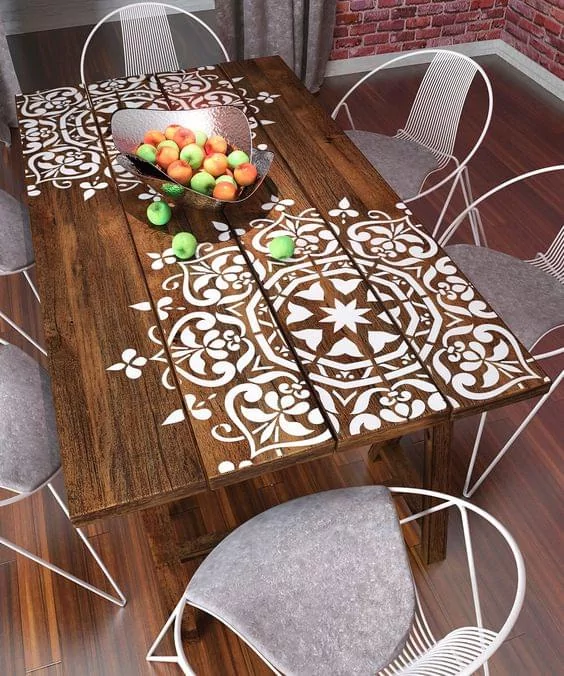 Fancy a new dining or kitchen table? Not got the budget for it just yet? No problem. Kitchen and dining tables are a great place to start to revamp a room. As a household item, tables also take a lot of pressure from wear and tear. Scratches, hot plates, stains, food the list is endless. Depending on the material of your table you have in mind you could repaint it or add stencil designs.