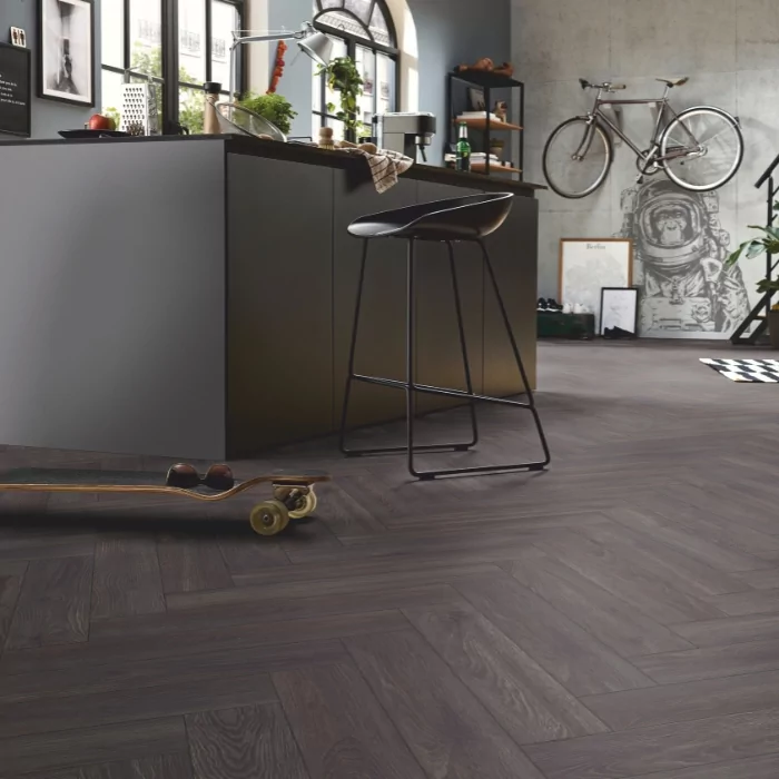 For a budget-friendly option that doesn’t skimp on performance, Verdanti Essential Twilight Oak is well worth a look. It’s an 8mm laminate with a rustic oak finish, textured to mimic natural grain, and tough enough to handle daily life. With an AC4 rating and bevelled edges, it delivers on both style and durability at a lower price point.