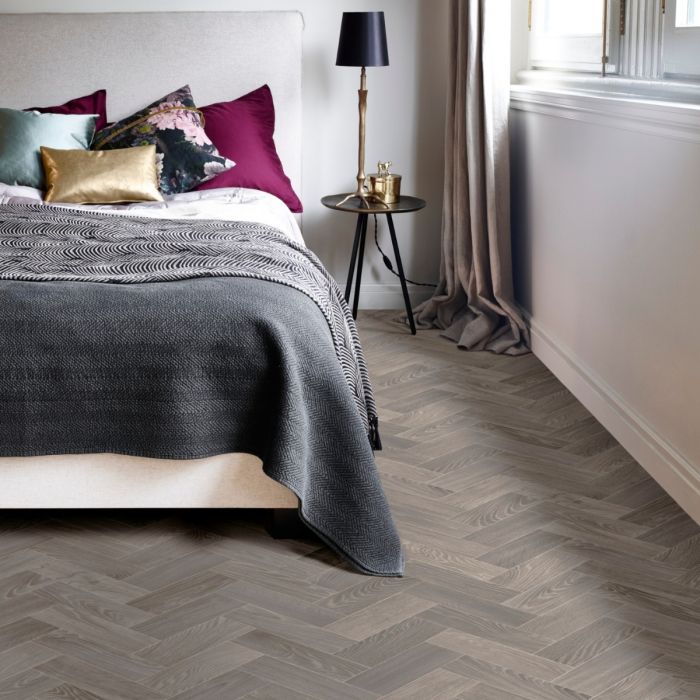 Classique Normandy Oak Vinyl Flooring showcases a refined parquet-inspired design with small planks laid in a timeless herringbone pattern. The dark tones add depth and warmth, creating a cosy feel while the directional layout helps rooms appear more spacious and structured. Featuring a dark grey herringbone design, this flooring delivers classic wood style with the modern practicality of a vinyl roll, without the cost or upkeep of real timber.- Product Type
