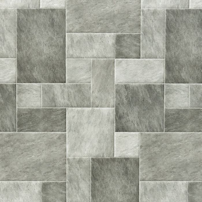 Felt-backed vinyl offers a hassle-free installation over existing sub-floors, effectively camouflaging minor imperfections and delivering a cost-effective solution. This stunning stone tile effect lino is protected against scratches and stains thanks to its protective PU coating. It is also the perfect vinyl flooring for bathrooms and kitchens, boasting a slip and water-resistant surface.