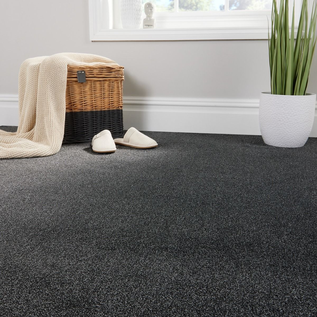 Create a rich, atmospheric interior with Nightfall, an affordable grey carpet from the Cosy Saxony range, featuring rich dark tones that add moody depth and sophistication to any room. Its soft saxony fibres offer a plush, inviting surface underfoot, perfect for family living or relaxing spaces. Nightfall combines everyday comfort with a budget-friendly price, making underfoot luxury easy to enjoy.- Product Type