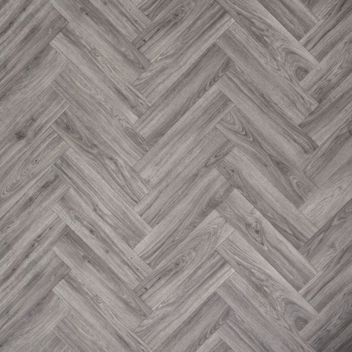 Sterling Parquet is a stunning grey herringbone vinyl flooring that offers contemporary charm with its harmonious blend of soft, inviting hues. The fresh tones, paired with the timeless parquet design breathe new life into any space, making it feel spacious and light. Crafted with comfort at its core, this 5mm thick vinyl sheet flooring combines elegant aesthetics with a luxurious underfoot feel.The Cronus 50 range is our thickest vinyl floor covering collection, offering ultimate comfort and durability. At 5mm thick, with a robust 0.25mm wear layer, it provides superior resilience, making it ideal for a wide range of spaces. The comfort is perfect for living rooms and bedrooms, while the water and slip-resistant surface make it the perfect bathroom or kitchen vinyl flooring solution. This extra-thick vinyl flooring offers stunning wood and stone alternatives without the expensive, time-consuming installation and maintenance.