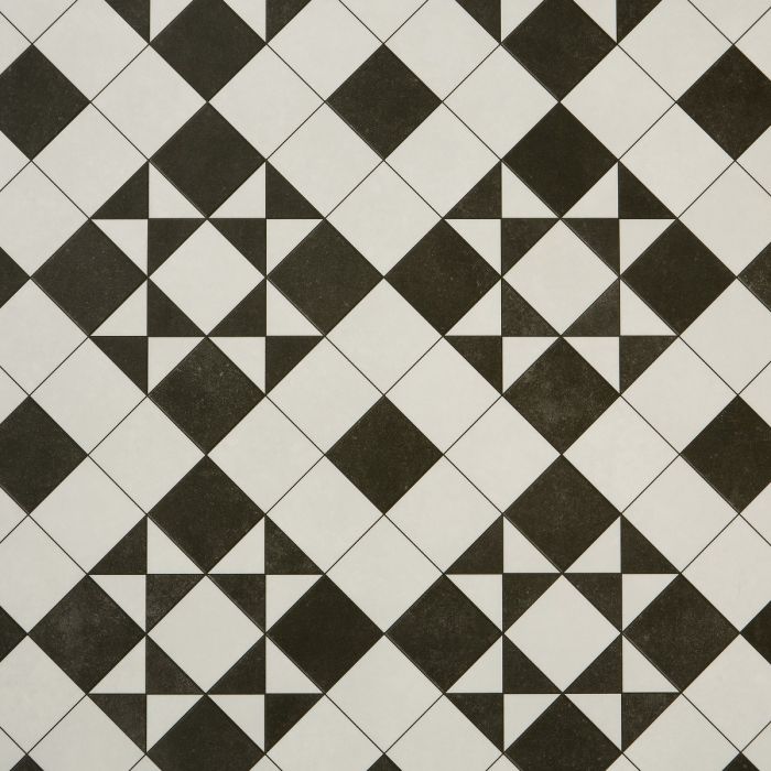 Brunel is a Victorian-inspired tessellated tile design in black and white. This cushioned, felt backed vinyl floor is easy to install and suited to any residential space.Give your home an injection of Victorian style with BRUNEL from ERA, our exclusive collection of Victorian inspired contemporary geometric flooring. The Brunel design replicates black and white ceramic tile tessellations to create a traditional pattern of stars and diamonds. This floor looks amazing in entrance hallways but is equally suited to any residential space, including conservatories. Even better, being felt backed means