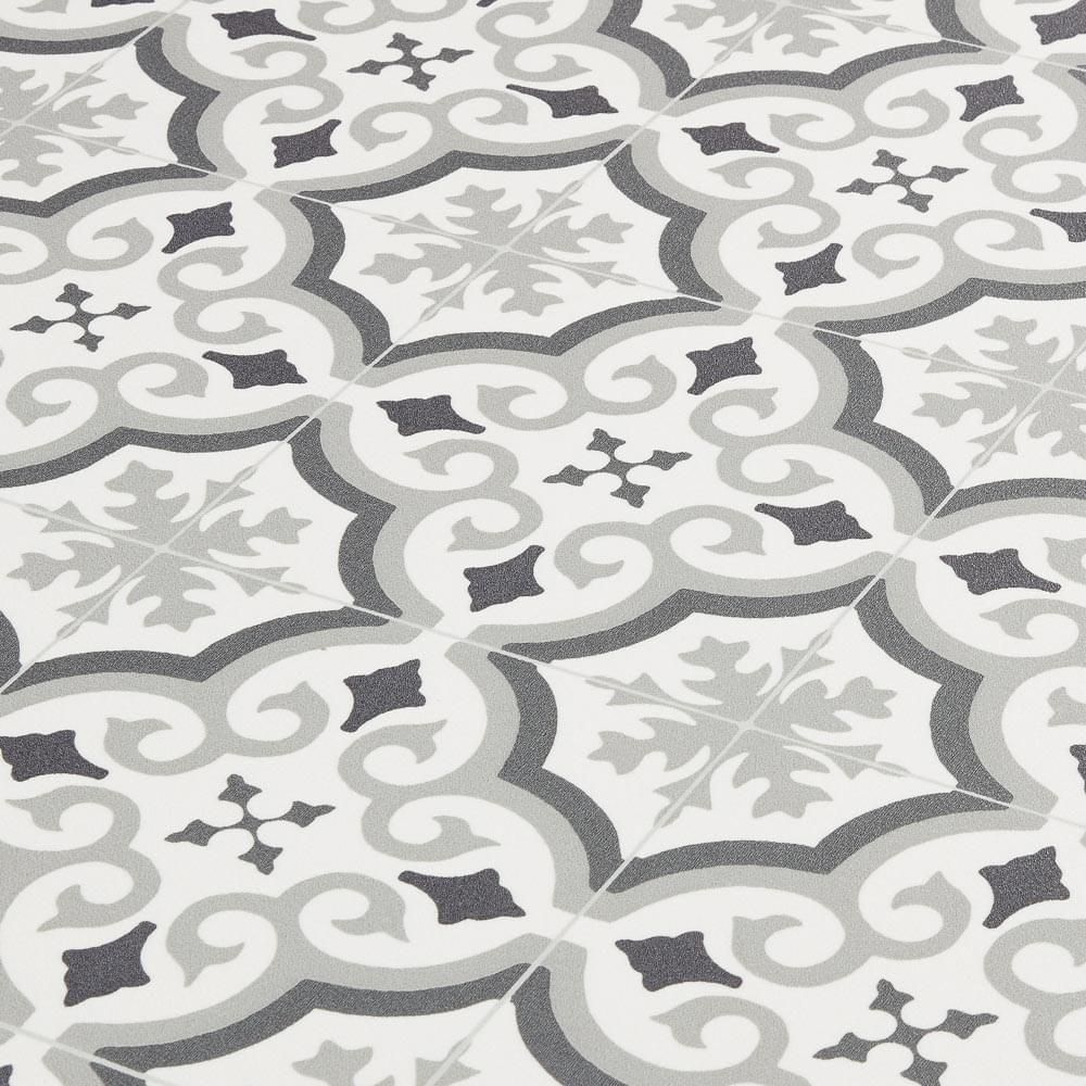 Invite some Spanish charm into your home with the Baldosa Spanish tile effect vinyl flooring. The Esperanza design is a beautiful mix of Grey, Black and Off White tones set in an authentic Mediterranean tile pattern that will transform any room in the home. Baldosa sheet vinyl is water resistant, hard wearing and comes with a 5 year residential guarantee. Available in multiple widths, Baldosa is simple to install and can be easily maintained thanks for it's protective surface PU wear layer.