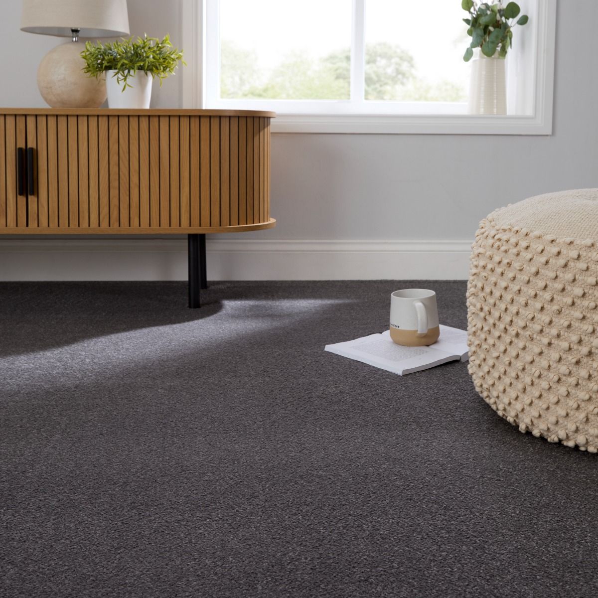 Tusker wraps deep, dark grey tones in a rich, moody palette that feels cosy and inviting, adding instant depth to any room. Its understated colouring creates a sophisticated, contemporary atmosphere while still maintaining a welcoming, comfortable vibe. Part of the Grace range, Tusker combines plush comfort with durable construction, making it the perfect bedroom or lounge carpet.- Product Type