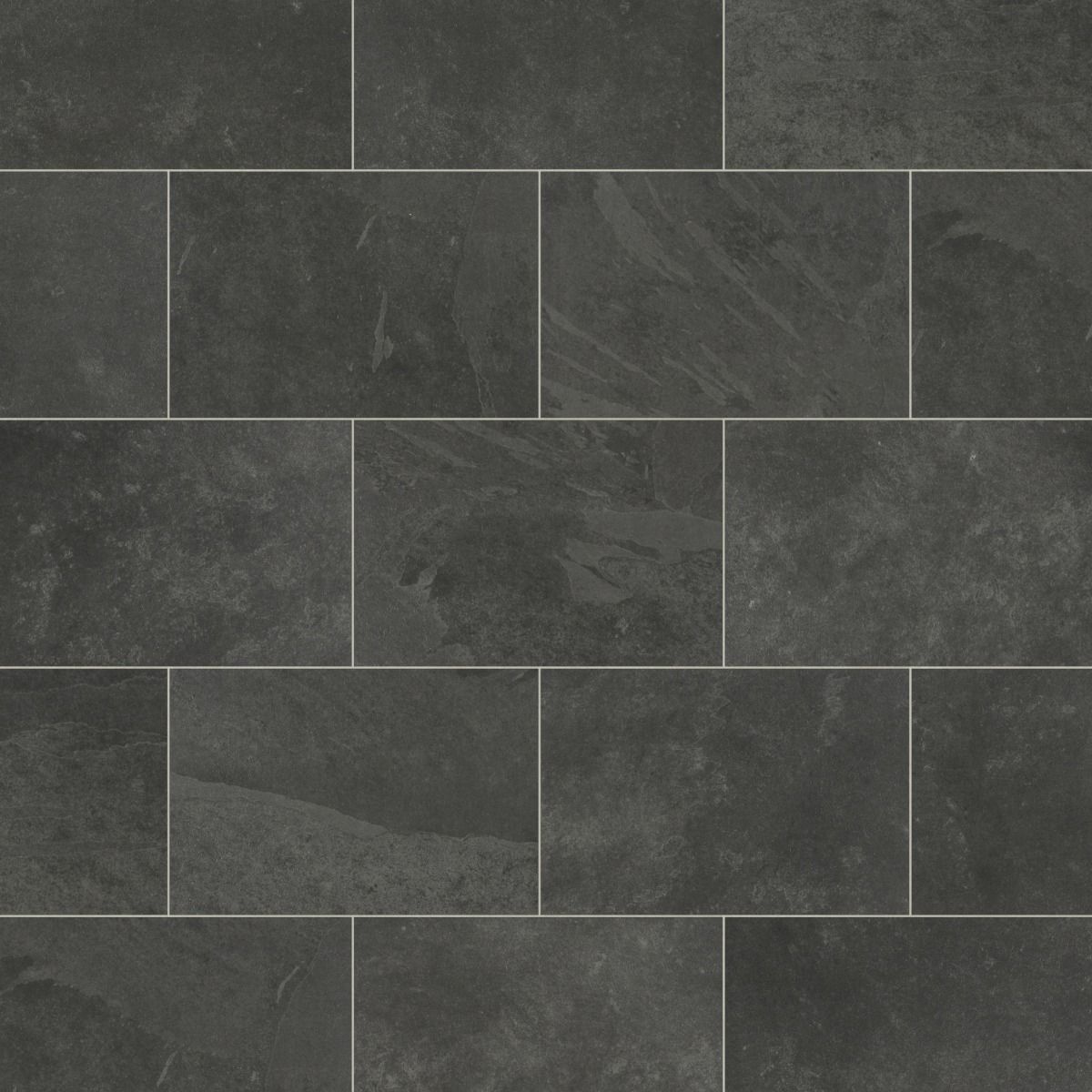 Black Riven Slate ST15 Luxury Vinyl Tiles feature a captivating palette of dark charcoal tones with a gentle, undulating texture, adding visual depth and interest. This slate effect vinyl flooring works beautifully in both traditional and contemporary settings, offering versatility with or without design strips. Whether paired with light or dark accents, the natural variation in the tiles creates a striking and sophisticated backdrop for any décor.