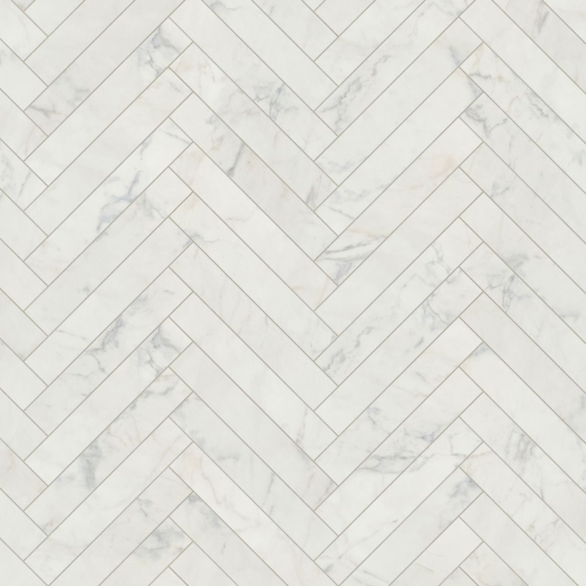 Classic and timeless white marble meets fashionable and on-trend herringbone. Glacial Marble consists of bright white marble tiles with elegant and regal veining, the perfect design to add a touch of class to your home. Using fresh light tones is a great way to make any space feel open and airy.