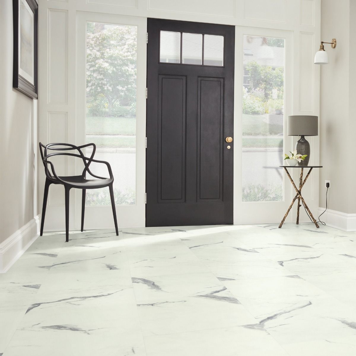 Karndean Palazzo Marble is a remarkable marble vinyl flooring that beautifully replicates the elegance of natural marble. The opulent and sophisticated appeal is highlighted by its polished surface and intricate dark veining, creating a visually captivating white marble effect flooring that exudes luxury.