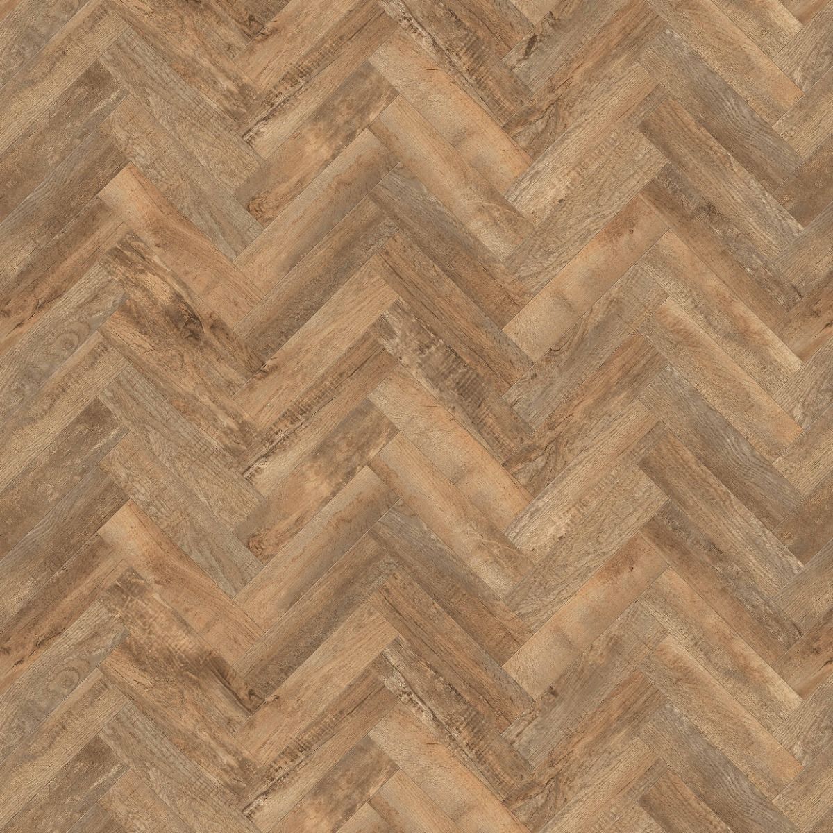 Roots Classic Herringbone Country Oak 54852 - where traditional parquet flooring meets the modern ease and durability of luxury vinyl tiles. With a registered embossing on the surface, the authentic textures perfectly match the intricate details of the design, forming a flooring almost indistinguishable from natural wood flooring.