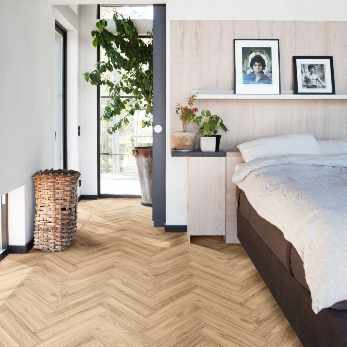 Moduleo Roots Herringbone Blackjack Oak 22229 is the epitome of style and sophistication. While the flooring is minimalistic and elegant, the parquet design offers a unique approach to standard wooden flooring. Spruce up your home with a blend of natural earthy browns, resulting in a homely and inviting ambience.