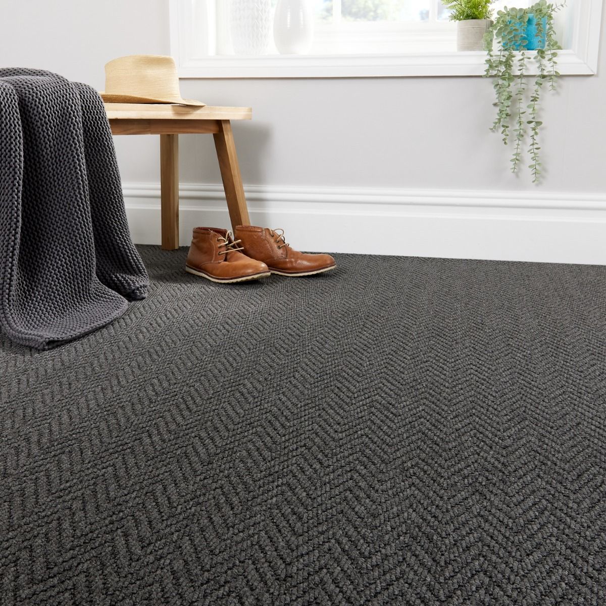 Transform your home with Odin Hansen Black Patterned Carpet. Its captivating herringbone design and flecked berber fibres perfectly blend with its neutral colour palette, offering a versatile flooring solution that compliments a variety of interiors. Crafted with precision, Hansen is a stunning luxury carpet that effortlessly combines style with industry-leading performance.