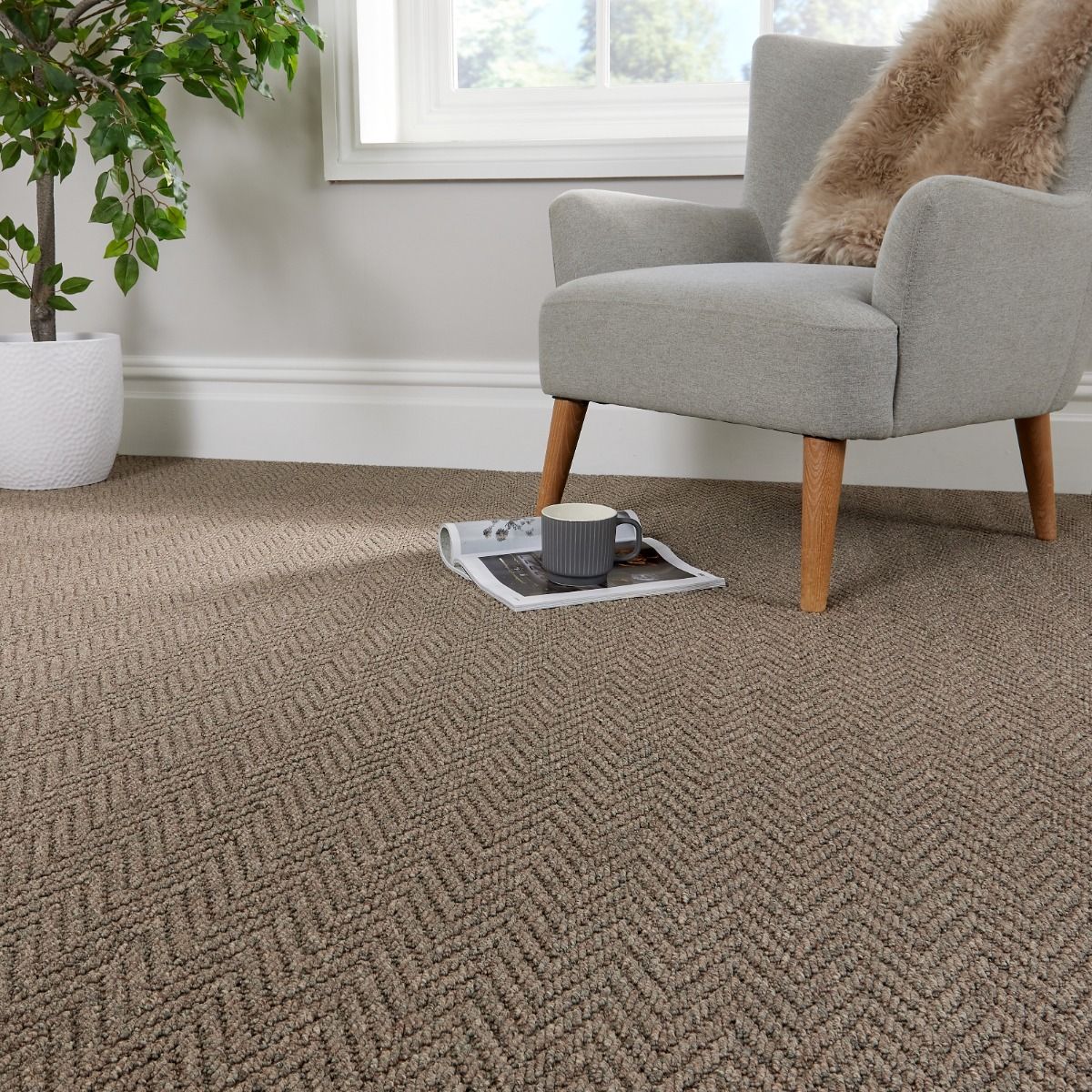 Transform your home with Odin Haugen Brown Patterned Carpet. Its captivating herringbone design and flecked berber fibres perfectly blend with its neutral colour palette, offering a versatile flooring solution that compliments a variety of interiors. Crafted with precision, Haugen is a stunning luxury carpet that effortlessly combines style with industry-leading performance.