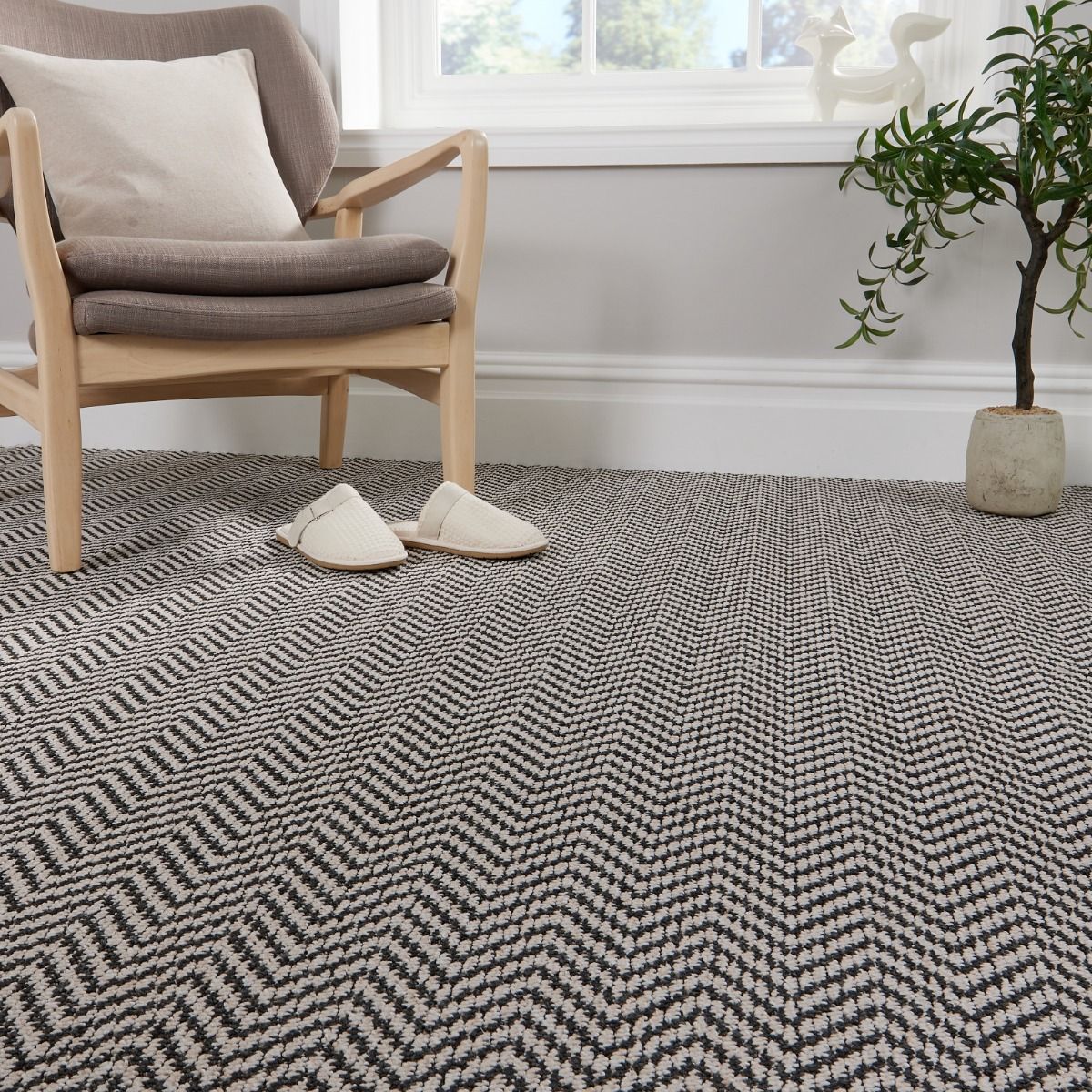 Make a statement with Pattern Play luxury carpet, where the enduring loop pile makes a lasting statement in style and durability. This is the perfect herringbone carpet for stairs and hallways, as it is expertly crafted to withstand the traffic of a busy family household. With tough looped fibres, the design keeps a crisp and pristine look, where cut pile carpets would lose their shape. It is even backed with a 5-year warranty, so you can pair your purchase with peace of mind.