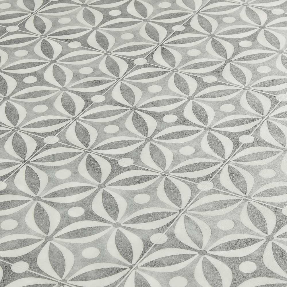Elevate your space with the refined charm of Quartz Grey Tile Vinyl Flooring. Featuring a rich, patinated dark grey base with a delicate light grey geometric pattern, this design seamlessly blends contemporary sophistication with classic appeal. Perfect for kitchens, bathrooms, and hallways, it brings depth, texture, and timeless elegance to any interior.
