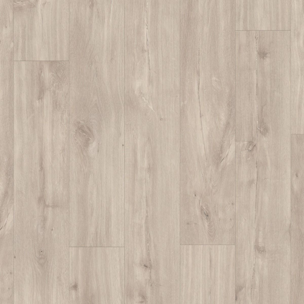 Quickstep Blos Canyon Oak Beige luxury vinyl tiles offer a minimalistic, muted palette with elegant grey undertones, creating a stunning modern aesthetic. The subtle grain structure and bold decorative wood knots create a captivating visual interest that closely resembles the charm of natural hardwood flooring.