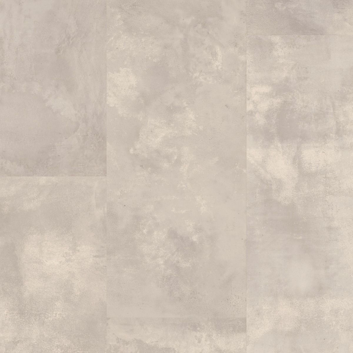 Quickstep Muse Stained Concrete stone tile laminate flooring embodies a contemporary aesthetic, featuring light grey tones that effortlessly create a bright and open atmosphere in any space. Its textured surface and authentic detail add depth and character, closely replicating the modern charm of concrete floor tiles.
