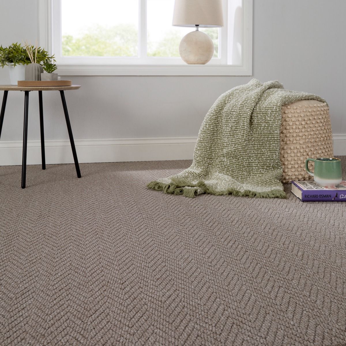 Lift any interior with Coffee Herringbone, a dark beige carpet designed with long-lasting durability, a textured loop pile and a contemporary aesthetic. Its rich, warm beige brown tone creates a cosy, inviting atmosphere, like the comforting embrace of a perfect cup of coffee. The herringbone design adds dynamic movement and a touch of sophistication. The result is a woven carpet that offers a classic feel with a subtle touch of distinctive character.- Product Type