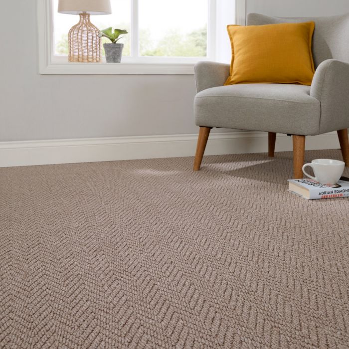 Refresh your room with Latte Herringbone, a soft light brown carpet featuring a hard-wearing loop pile and a modern textured finish. Its warm, earthy beige-brown tone brings a naturally inviting feel to any room, while the herringbone pattern adds subtle movement and sophistication to the design. The result is a woven carpet that delivers enduring style while maintaining a refined, understated charm.- Product Type