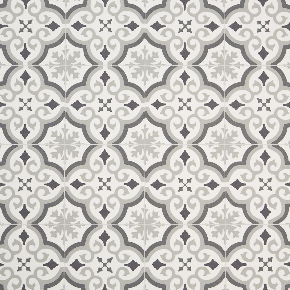 Invite some Spanish charm into your home with the Baldosa Spanish tile effect vinyl flooring. The Esperanza design is a beautiful mix of Grey, Black and Off White tones set in an authentic Mediterranean tile pattern that will transform any room in the home. Baldosa sheet vinyl is water resistant, hard wearing and comes with a 5 year residential guarantee. Available in multiple widths, Baldosa is simple to install and can be easily maintained thanks for it's protective surface PU wear layer.