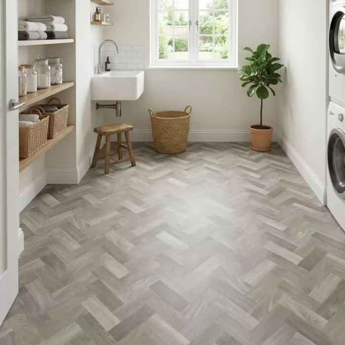 Spectrum Buxworth Oak Herringbone Vinyl Flooring features a modern grey palette with subtle plank-to-plank variation, creating a reclaimed timber aesthetic with plenty of depth and character. The classic parquet layout is reimagined with cooler, weathered tones, striking the perfect balance between traditional style and a contemporary spin. With its weathered detailing and refined grey tones, this durable vinyl flooring offers an affordable way to achieve the look of a timeless parquet floor.Get the look of classic parquet flooring for less with Spectrum Buxworth Oak, a stylish and affordable vinyl flooring that captures the charm of traditional timber. Featuring a natural surface finish for enhanced realism, it delivers timeless pattern and character with all the practicality of modern design.
