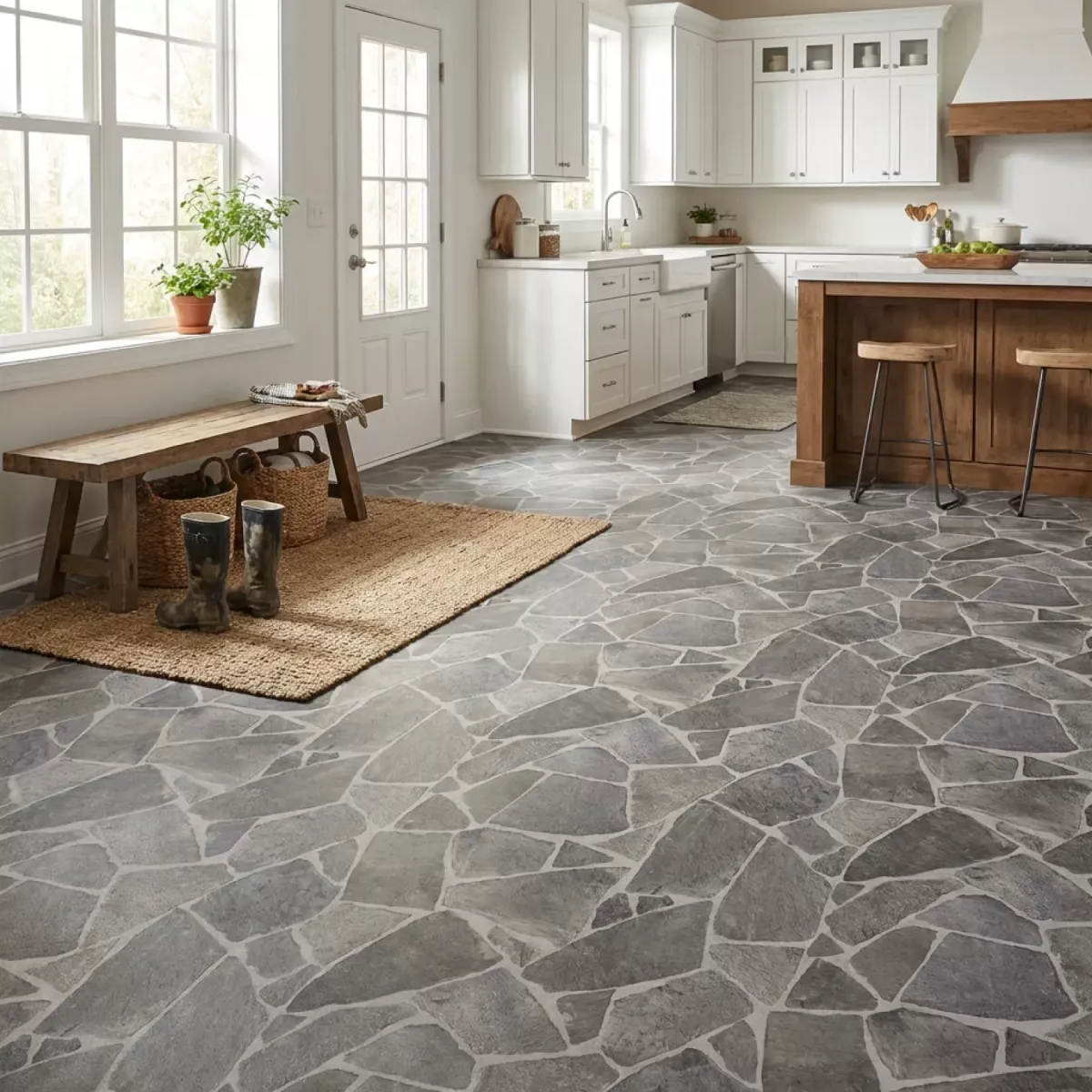 Created with busy households in mind, Holtwell Stone stands up well to everyday spills and cleaning. Thanks to its water resistant construction, this vinyl flooring works effectively for kitchens where moisture and mess are part of daily life.