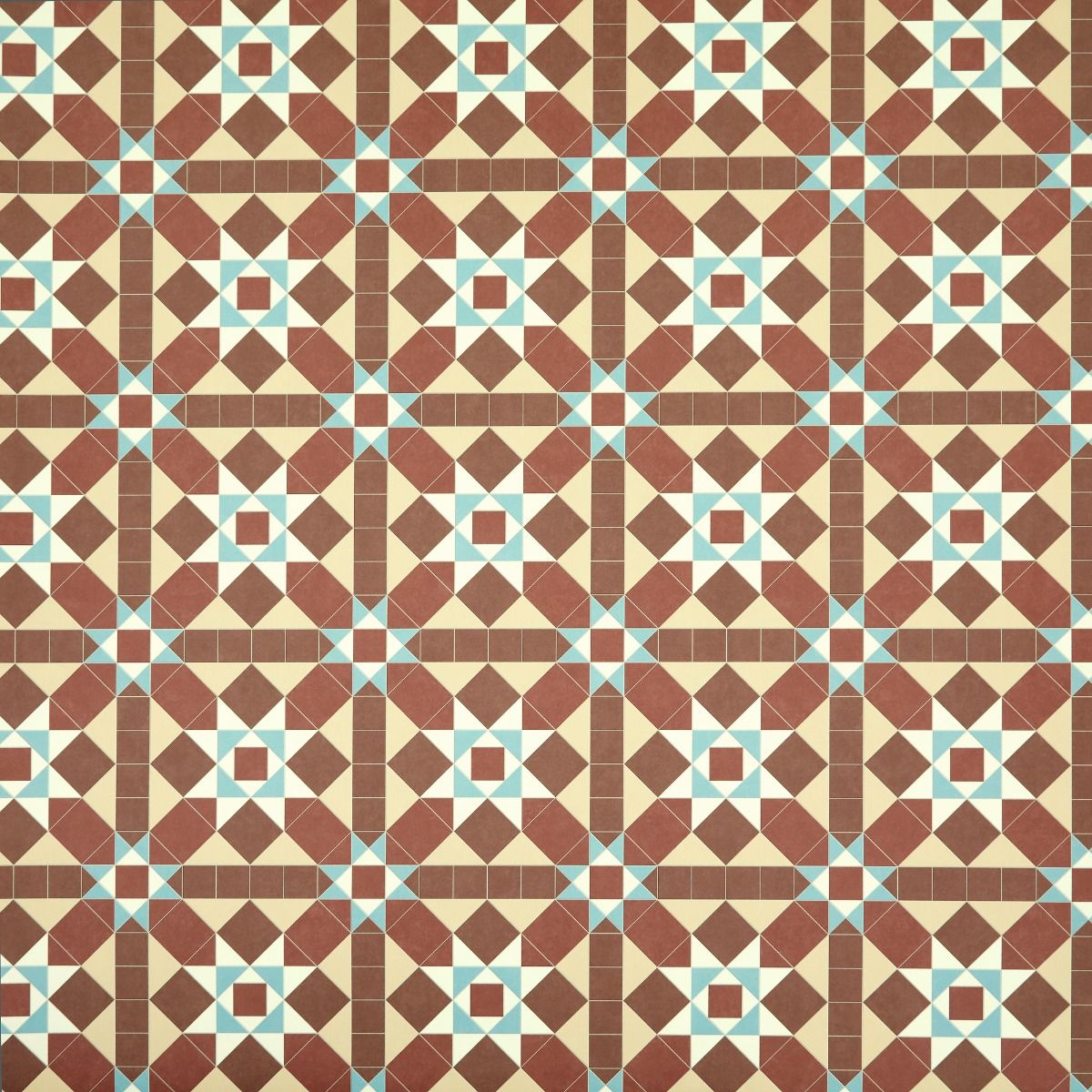 Barton is a Victorian inspired tessellation of geometric shapes in shades of beige and brown, with subtle blue highlights. This cushioned, felt backed vinyl floor is easy to install and suited to any residential space.