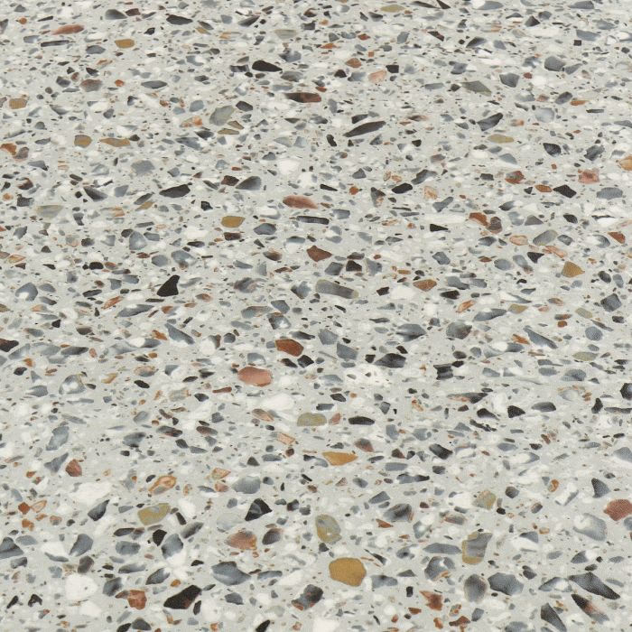 Embrace the elegance of Moonstone Terrazzo felt back vinyl flooring, where a neutral grey backdrop serves as the canvas for a captivating display of large terrazzo speckles in various shades and colours. This bold and unique stone effect vinyl flooring takes the popular terrazzo floor trend to new heights, infusing your space with a contemporary edge and undeniable sophistication. Thanks to digital print technology, every detail is authentically replicated, from the intricate patterns to the subtle textures.Explore the technical wonders of Moonstone Terrazzo stone effect lino flooring, a premium choice that harmonizes comfort and durability. Featuring a robust 0.25mm wear layer this 2.5mm thick vinyl flooring is Fortified by a protective PU coating. This coating protects the surface from stains, scratches and scuffs, ensuring its longevity even in high-traffic areas like hallways and living rooms. As a Non-slip vinyl flooring, Moonstone Terrazzo is water resistant and features an R10 slip resistance rating, making it perfect for bathrooms and kitchens where splashes and spills are common but safety is paramount.