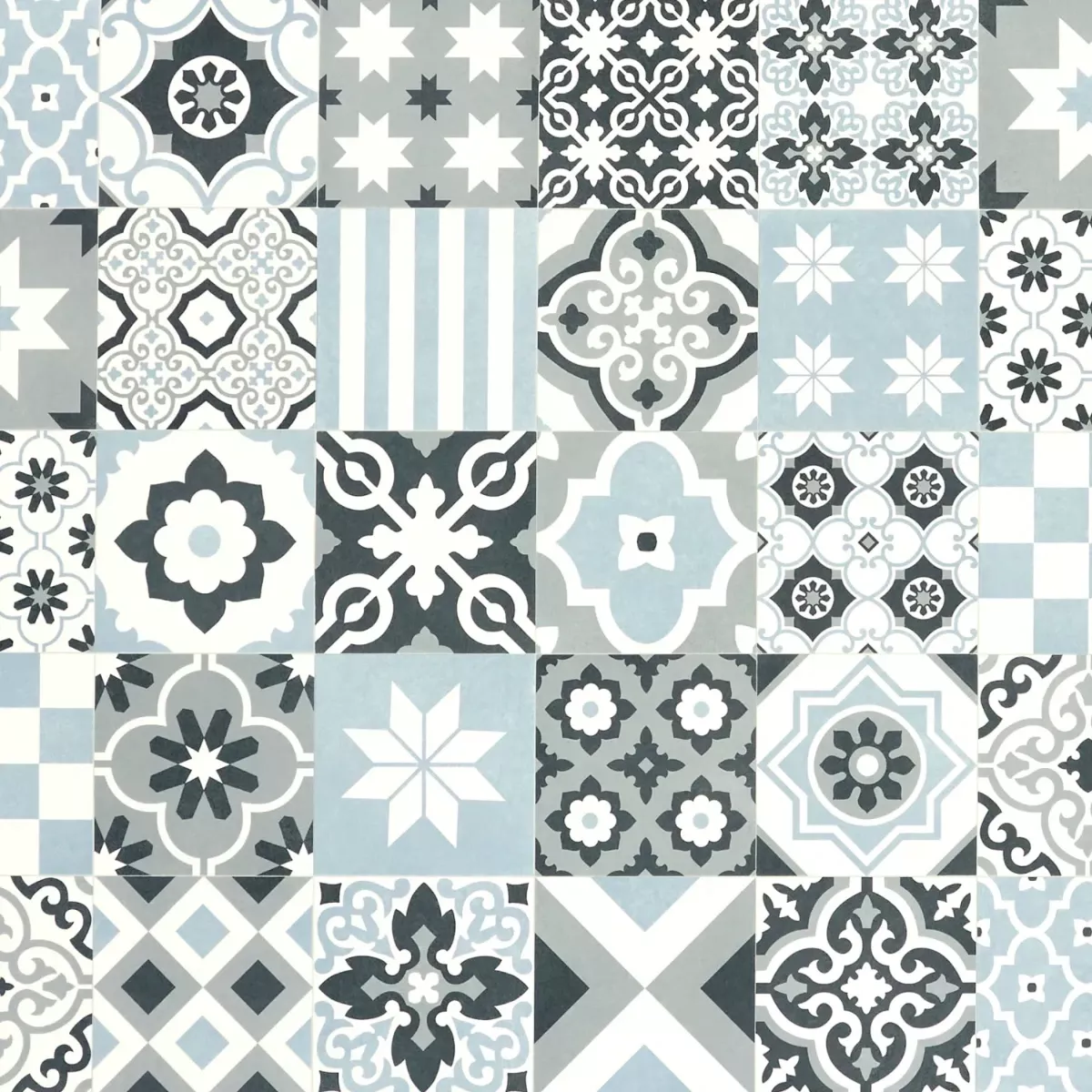 Refresh your space with Vivre 74 Sheet Vinyl Flooring – a soft and stylish take on traditional Moroccan patterned tiles in muted blue and grey tones. Featuring a mix of intricate geometric motifs set against a light base, this elegant blue vinyl flooring brings subtle pattern and a relaxed feel to any room. Designed to echo the charm of classic tilework, this Moroccan style vinyl flooring offers a decorative yet understated finish that works beautifully in any interior.Designed to combine striking style with everyday practicality, Vivre 74 vinyl sheet flooring is built for modern living. With a total thickness of 2.8mm, it features a comfortable thermoback foam backing and a 0.2mm wear layer, providing a cushioned feel underfoot while helping to reduce noise. Unlike traditional tiles, this modern vinyl flooring offers warmth and comfort, avoiding the cold, hard surface often associated with ceramic or stone floors.